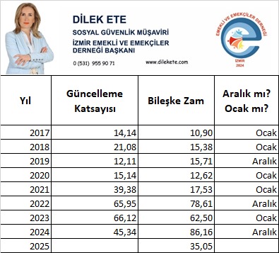 Her yıl danışanlarımızın en çok sorduğu soruya verdiğimiz cevapları emekli aylıklarını hesaplarken kullandığımız güncelleme katsayısına göre hesaplarız.Bu da emeklilik dilekçesi vereceğimiz yılın yıllık enflasyon rakamlarına ve bir yıl önceki yılın yıllık enflasyon rakamları dikkate alınarak hesaplanır.30/12/2024 tarihine kadar emeklilik dilekçesi verenler 2025 yılında emekli olanlara göre %23 daha fazla emekli aylığı bağlandı.Bu eşitlikten/adaletten uzak sistemin değişmesi gerekir. Tüm bu sebeplerle emeklilik dilekçesi vereceğiniz yıl oldukça önemlidir!!!